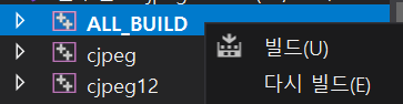 ALL_BUILD 우클릭 - 빌드