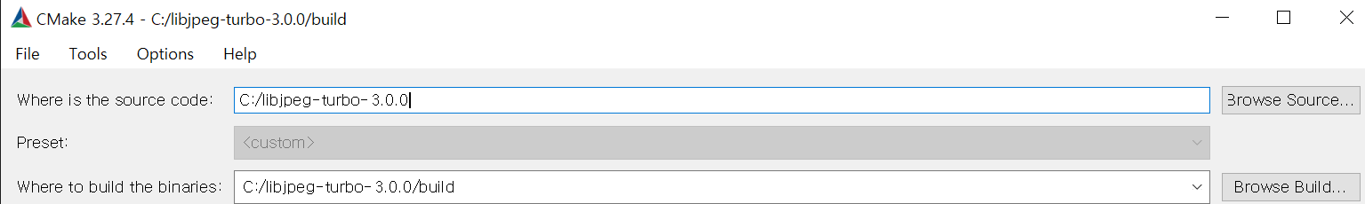 libjpeg-turbo-3.0.0.tar.gz 받아서 압축 풀고 C드라이브에 배치했다.