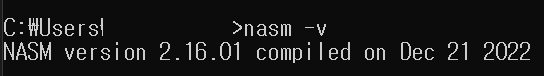cmd 창에 nasm -v 입력했을 때 저렇게 나와야 함