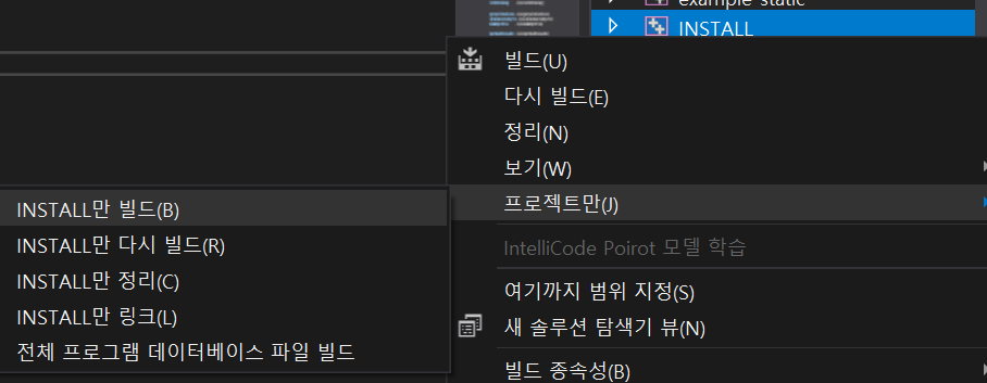 INSTALL 우클릭 - 프로젝트만 - INSTALL만 빌드