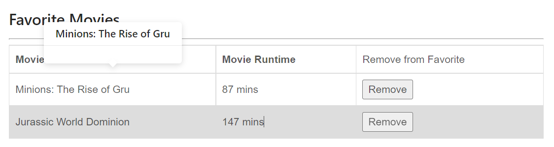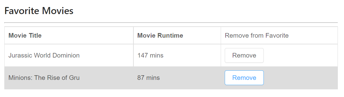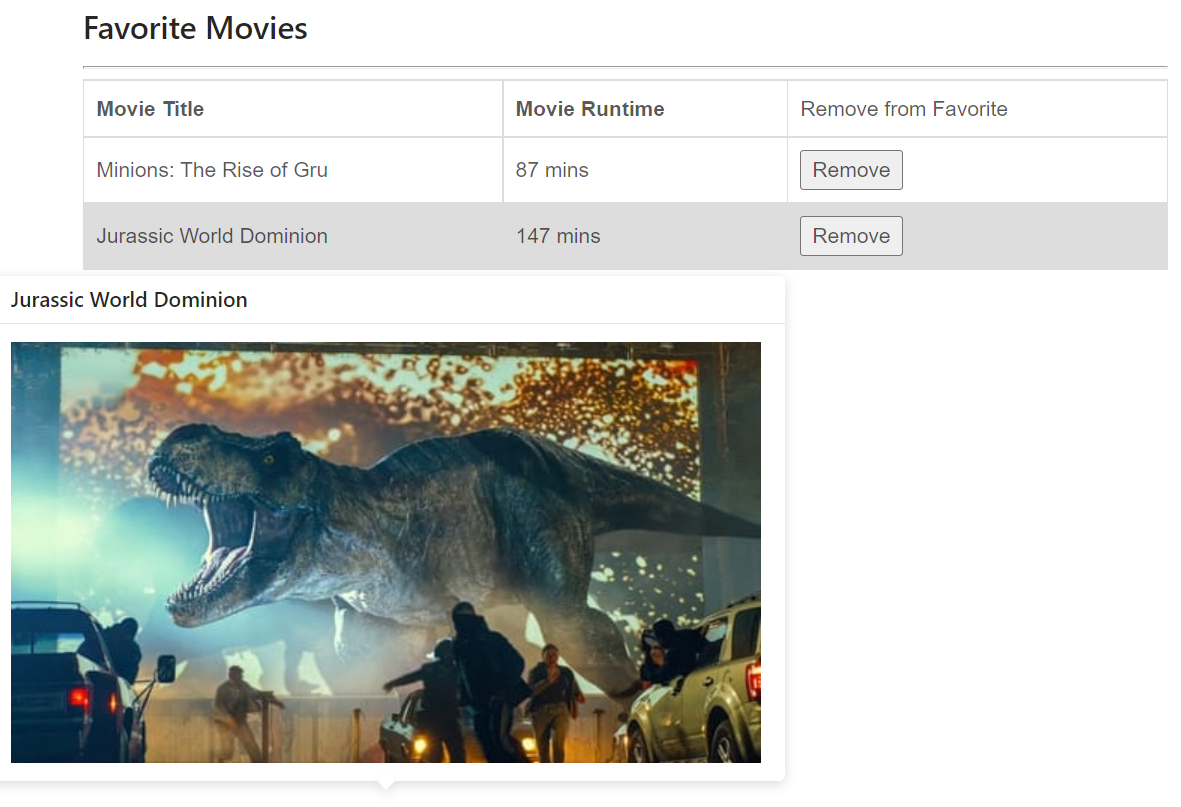 오늘은 Remove를 누르면 삭제가 되는 것과 마우스를 갖다 대면 영화 스틸컷?이 나오는 것을 구현할 것이다