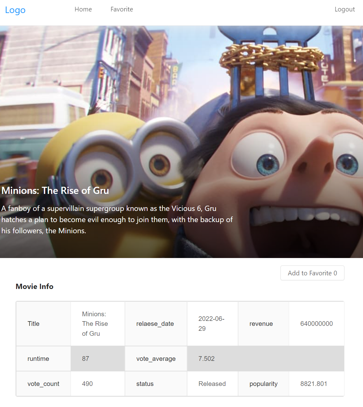 저번에는 Favorite 페이지로 들어가면 내가 좋아요 한 영화의 제목, 시간이 뜨는 것까지 구현했다