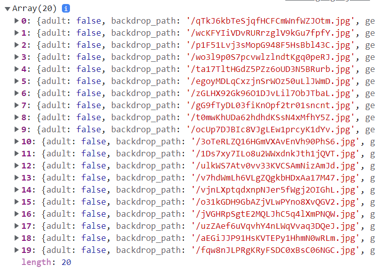setMovies([response.results])로 작성이 되어있었는데, 전개 연산자(...)를 사용하여 바꿔줬더니 제대로 출력이 되었다